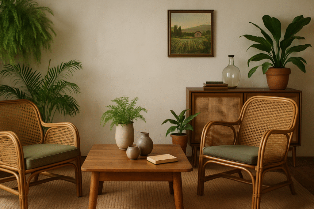 Décoration intérieure chaleureuse, responsable et personnalisée, entre histoire, durabilité et émotions vécues.